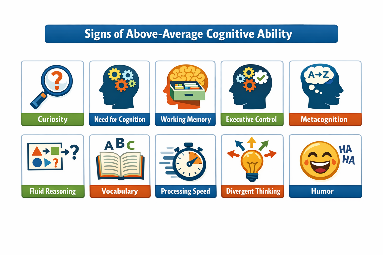 At the same time, intelligence test scores are not destiny: schooling quality, motivation, interests, persistence, and opportunities matter—sometimes a lot. The goal here is not to hand out “genius badges,” but to give you an evidence-informed way to reflect on cognitive strengths that often cluster together—and to spot which levers you can actually pull to improve your thinking.